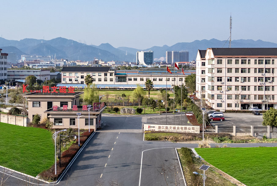 浙江凯文磁业有限公司( Kaiven mag) 成立于2012年,地处东阳市寀卢工业区。 公司经营范围:高性能强磁(磁性应用器材、磁保健用品、稀土永磁)、机电产品生产销售;货物、技术进出口。 主营:钕铁硼永磁及其他磁性材料的生产和销售。 浙江凯文磁业有限公司是一家集研发、生产、销售为一体的烧结钕铁硼永磁体生产基地,已具备年产1500吨高矫顽力烧结钕铁硼永磁体的能力国家高新技术企业。公司产品主要应用于汽车电机、变频空调压缩机、扬声器音响、计算机趋动器、风力发电机、机械自动化、电子信息、选矿、磁医疗等。2018年完成年销售额1.36亿。 公司拥有国内外先进的自动化、智能化制造钕铁硼磁体生产线,充分运用了“机器换人”、ERP、机联网技术,实现了产品的高技术、高质量、高效率生产。